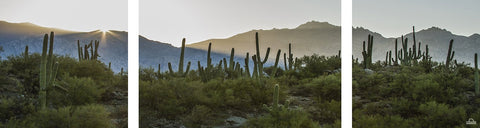 Region: Southwest Dawn Wall Imagery sets are made up of 3 Stretched Canvas Panels, with 1.5" deep stretcher bars. 3 point security hardware is inc...